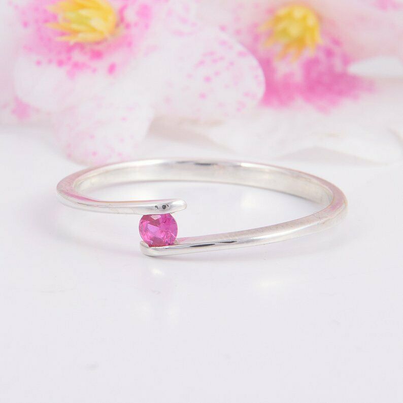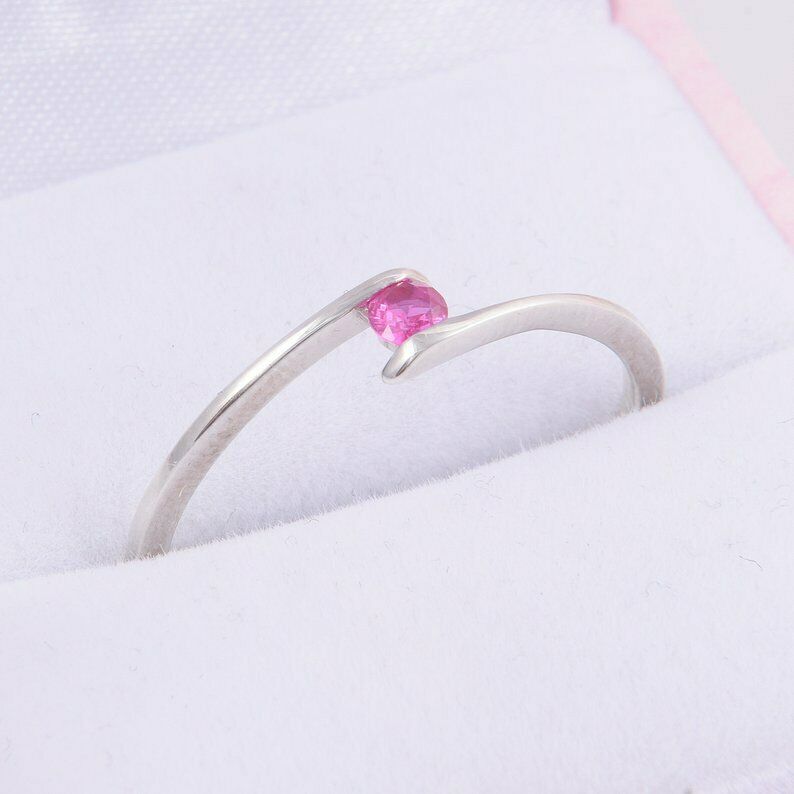 0.2ct Round Cut Pink Sapphire Tension Set Solitaire Ring 14k White Gold Finish