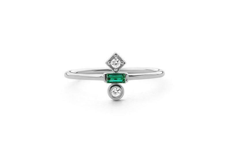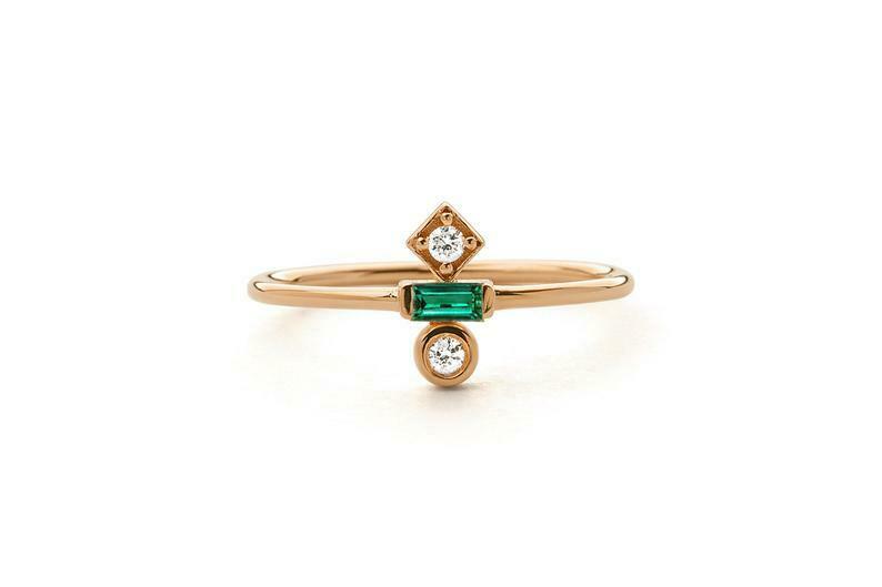 0.3ct Baguette Cut Green Emerald Minimalist Engagement Ring 10k Yellow Gold Over