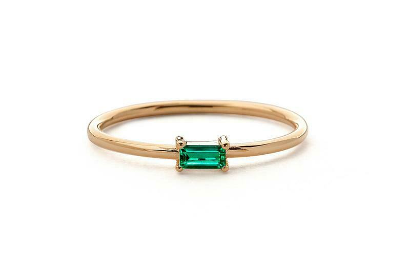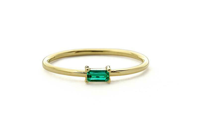 0.4ct Baguette Cut Green Emerald Minimalist Engagement Ring 14k Yellow Gold Over