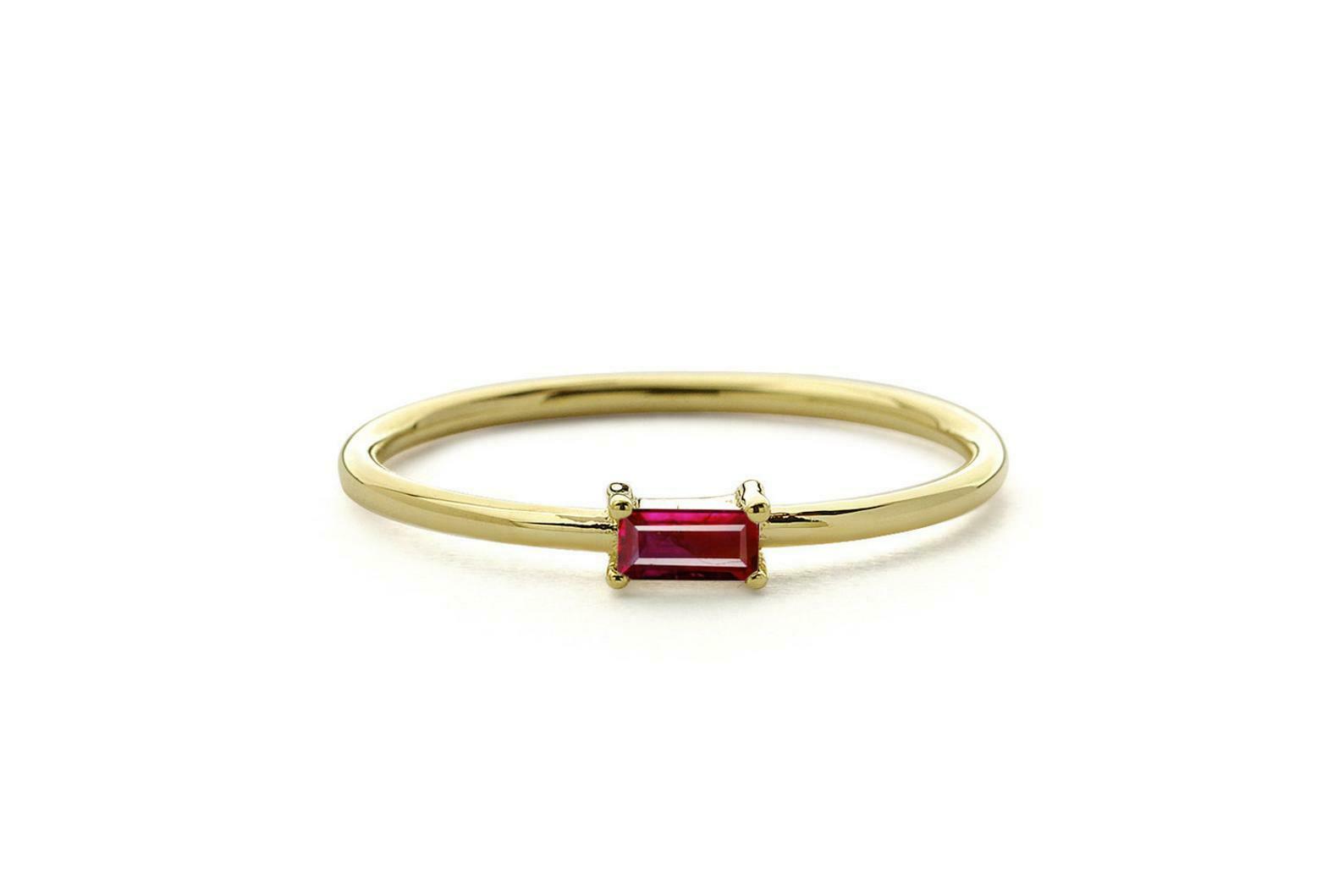 0.4ct Baguette Cut Pink Ruby Minimalist Engagement Ring 14k Yellow Gold Finish