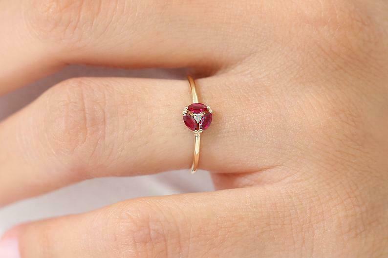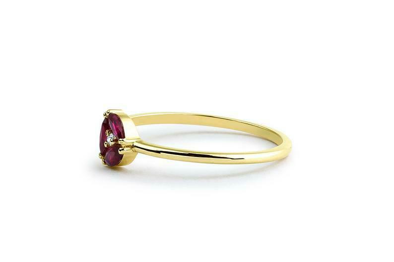 0.4ct Marquise Pink Ruby Cluster Minimalist Engagement Ring 14k Yellow Gold Over