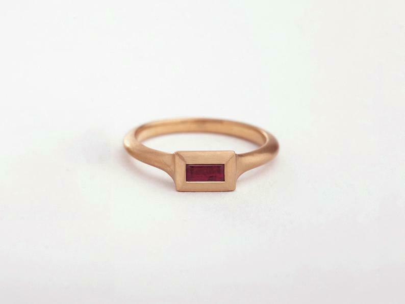 0.5ct Baguette Cut Ruby Engagement Ring Bezel Set Solitaire 14k Rose Gold Finish