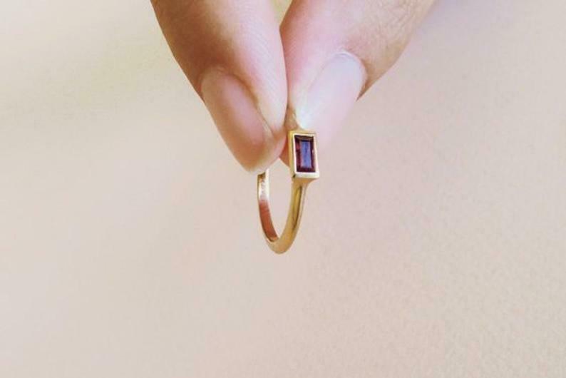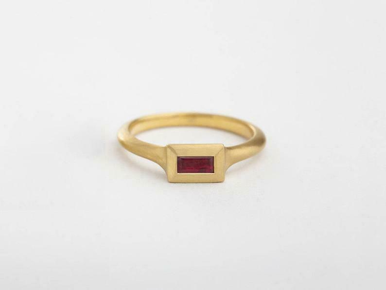 0.5ct Baguette Cut Ruby Engagement Ring Bezel Set Solitaire 14k Yellow Gold Over