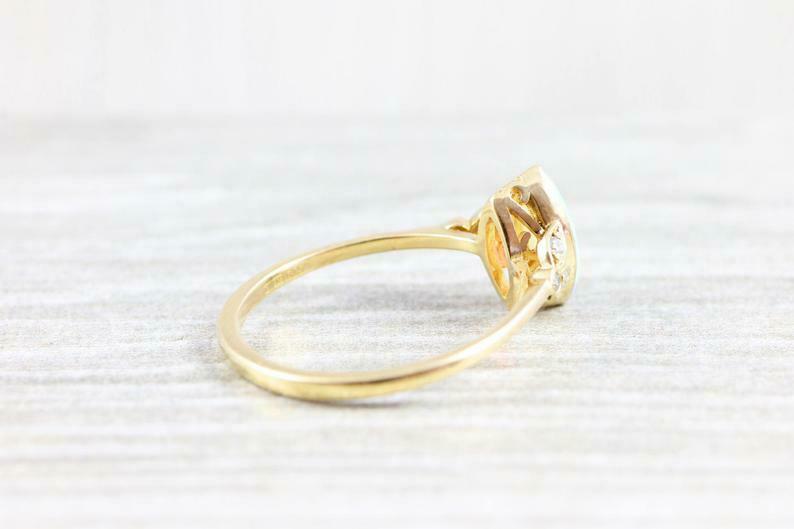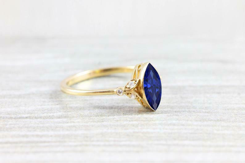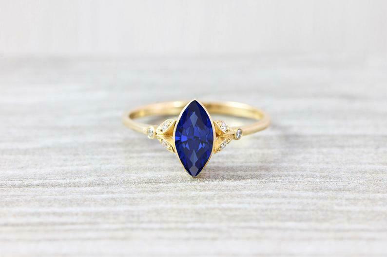 0.5ct Marquise Cut Blue Sapphire Floral Leaf Design Ring 14k Yellow Gold Finish
