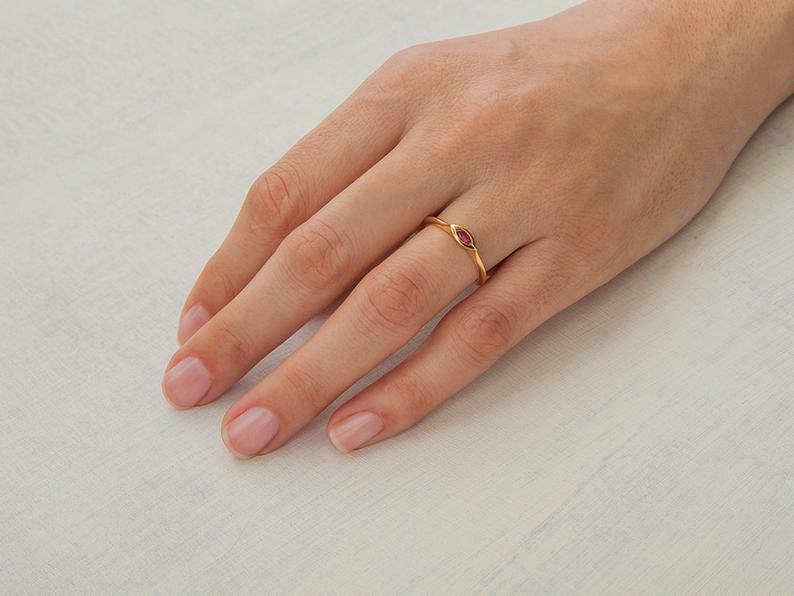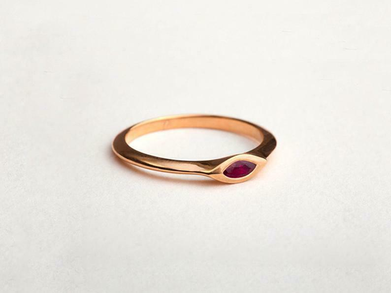 0.5ct Marquise Cut Ruby Engagement Ring Bezel Set Solitaire 14k Rose Gold Finish