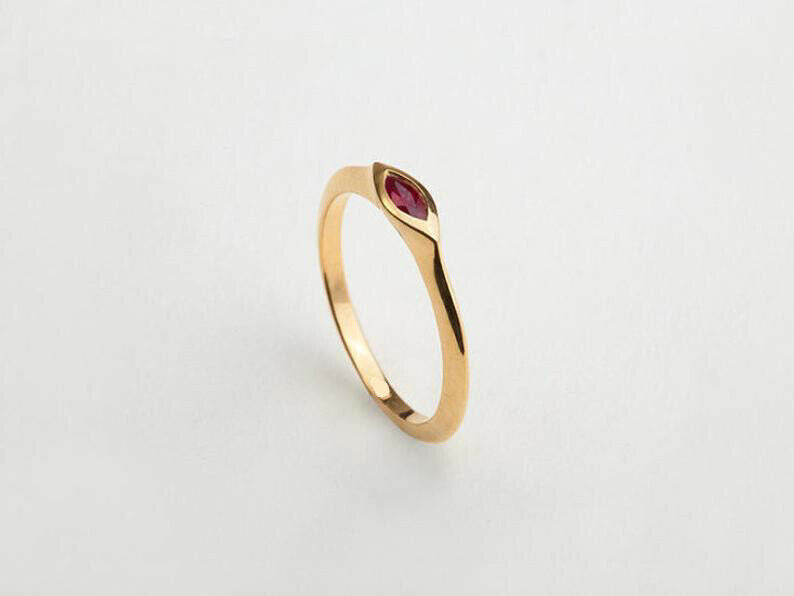 0.5ct Marquise Cut Ruby Engagement Ring Bezel Set Solitaire 14k Yellow Gold Finish