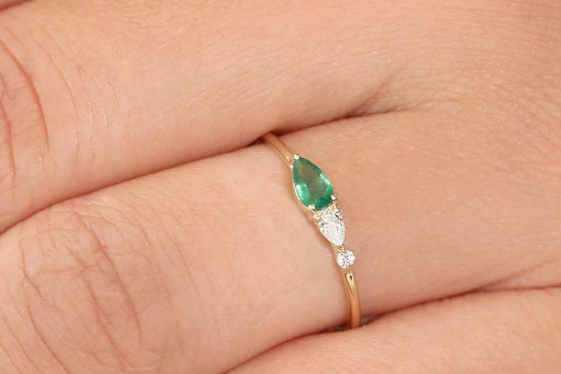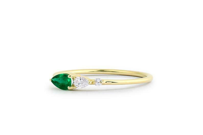 0.5ct Pear Cut Green Emerald Teardrop Minimalist Engagement Ring 14k Yellow Gold Over