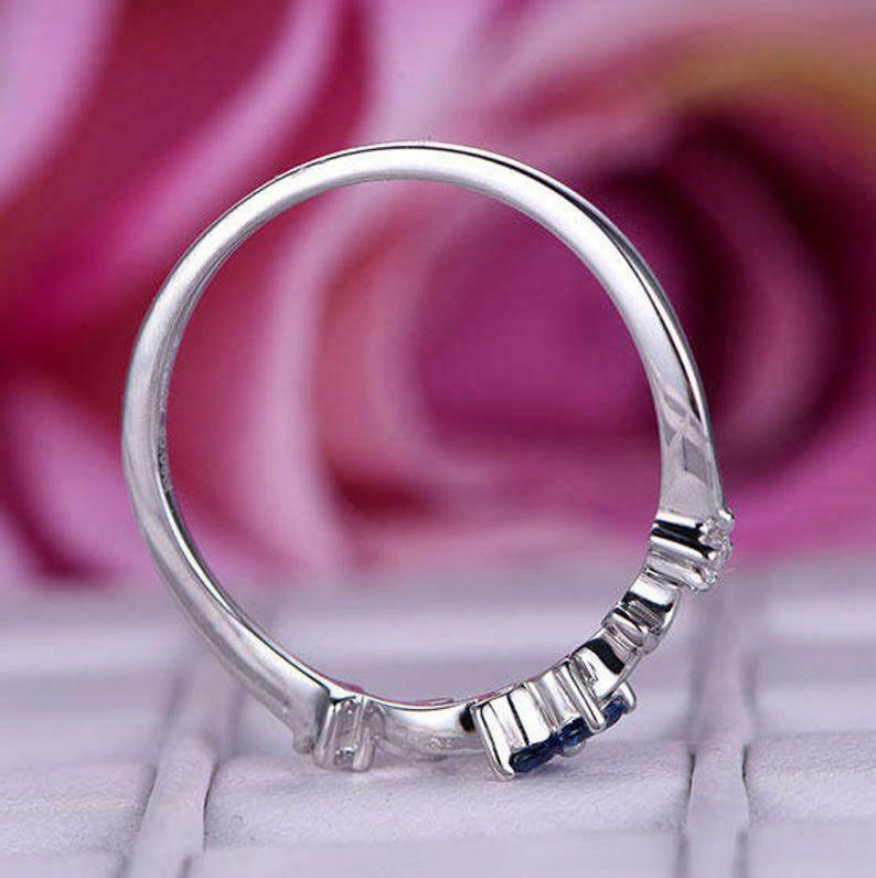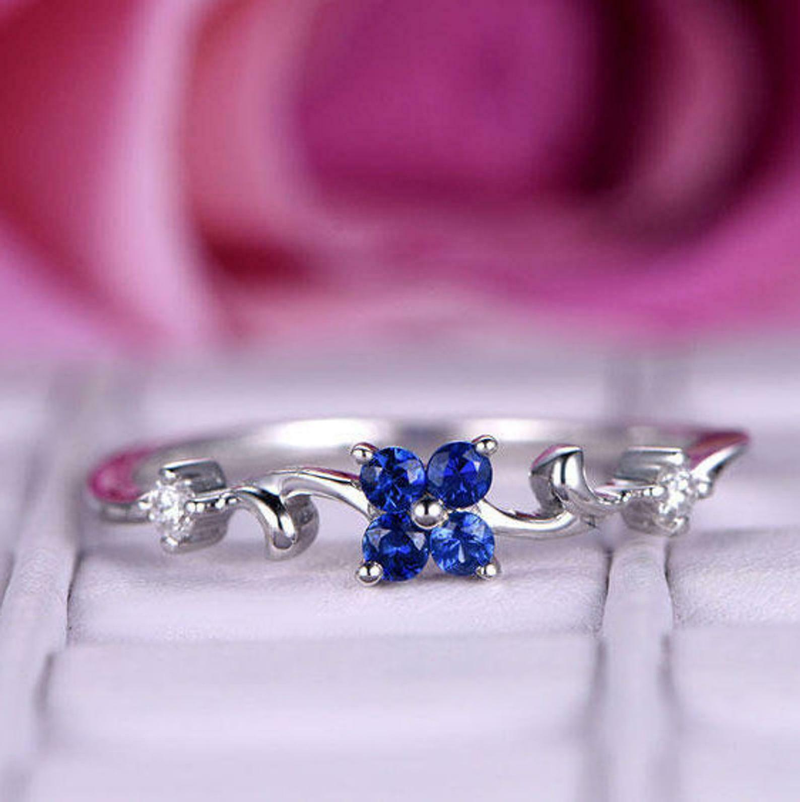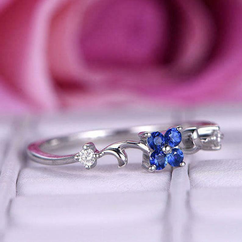 0.5ct Round Cut Blue Sapphire Engagement Ring Floral Minimalist 14k White Gold Over