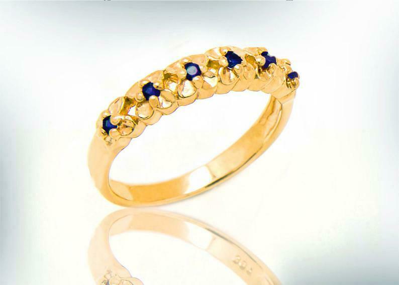 0.5ct Round Cut Blue Sapphire Floral Petite Wedding Band 14k White Gold Finish
