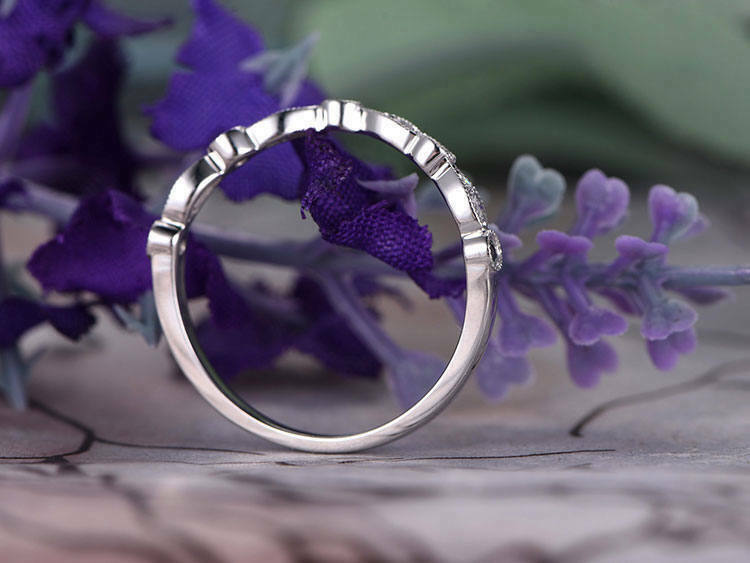 0.5ct Round Cut Green Emerald Wedding Band Curved Stackable 14k WhiteGold Finish