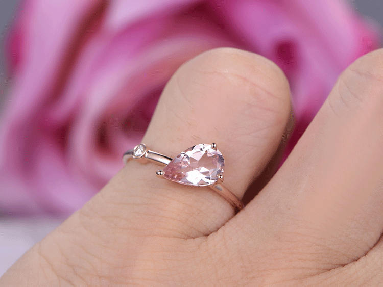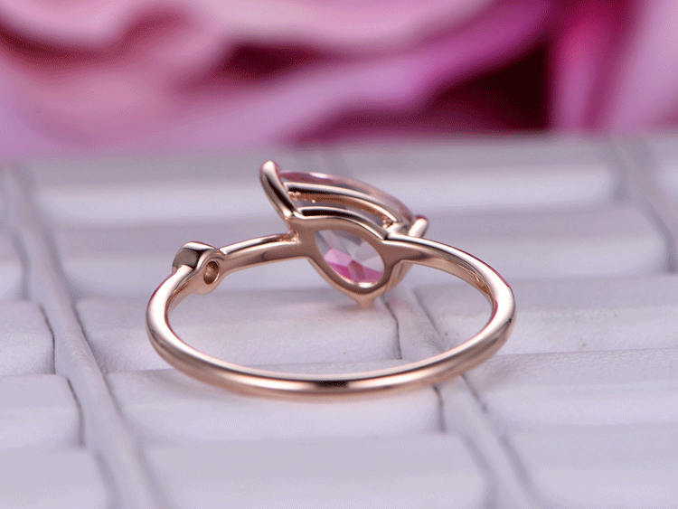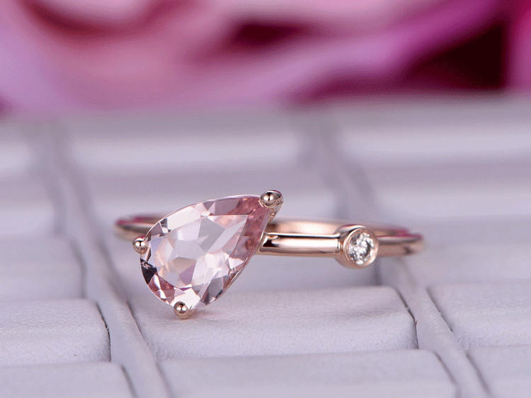 0.7ct Pear Cut Peach Morganite Engagement Ring Solitaire 14k Rose Gold Finish