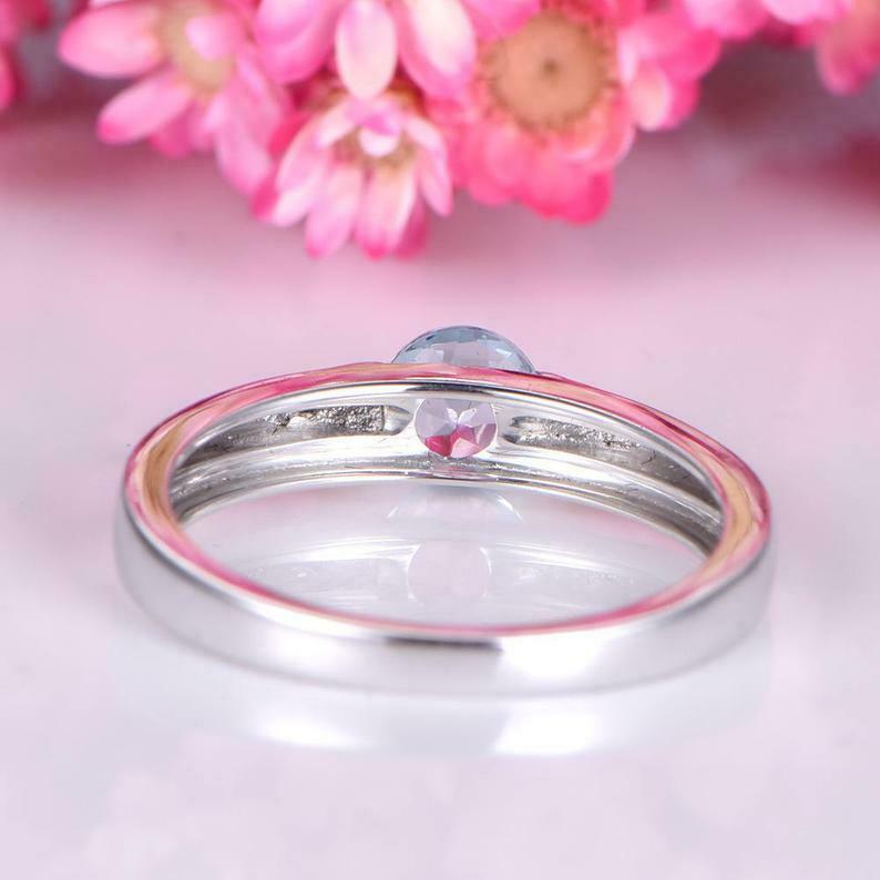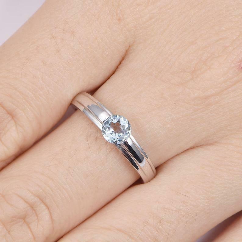 0.7ct Round Cut Blue Aquamarine Engagement Ring Solitaire 14k White Gold Finish