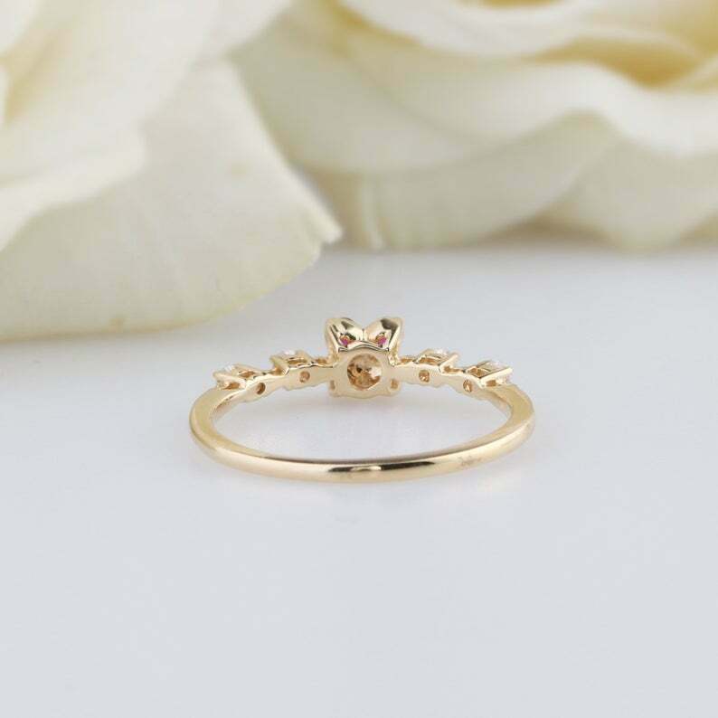 0.7ct Round Cut Pink Ruby Engagement Ring Flower Minimalist 14k Yellow Gold Over