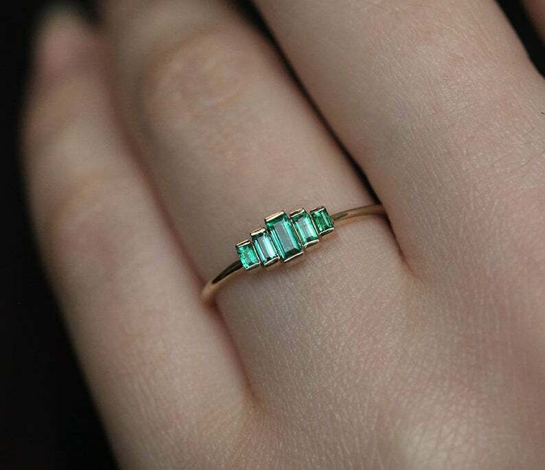 1.2ct Baguette Green Emerald Engagement Ring 14k Yellow Gold Finish 5 Stone Step