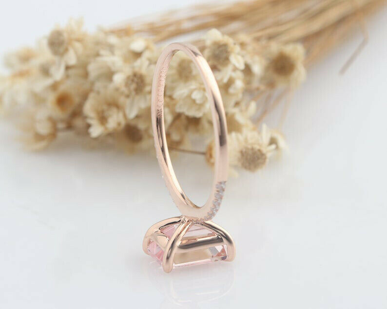 1.2ct Emerald Peach Morganite Solitaire Ring 14k RoseGold Over with Round Accent