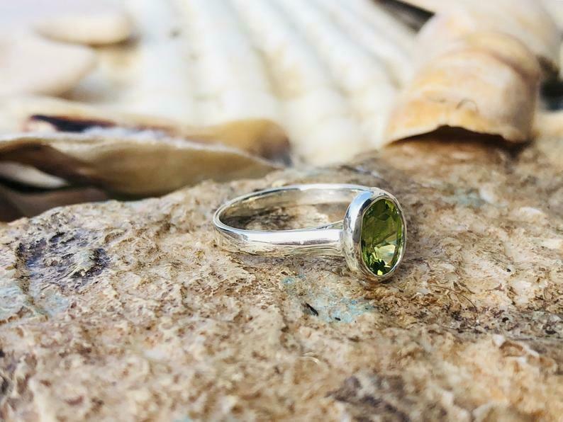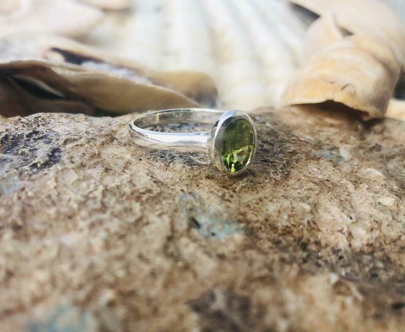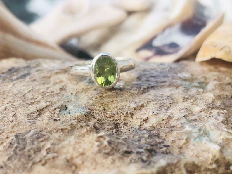 1.2ct Engagement Ring Oval Cut Green Peridot Solitaire 14k White Gold Finish