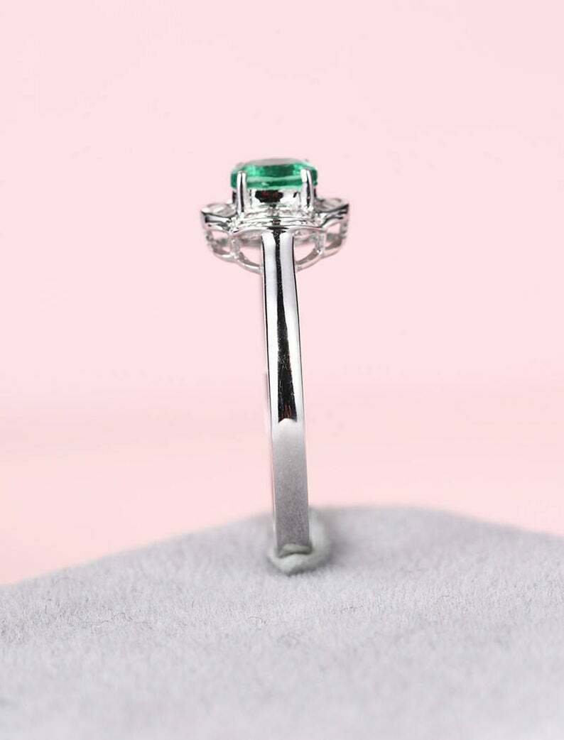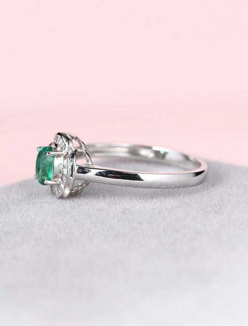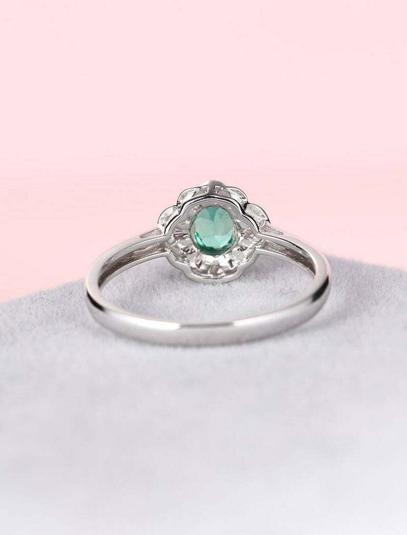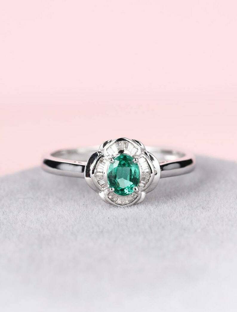1.2ct Oval Cut Green Emerald Floral Halo Art Deco Ring 14k White Gold Finish