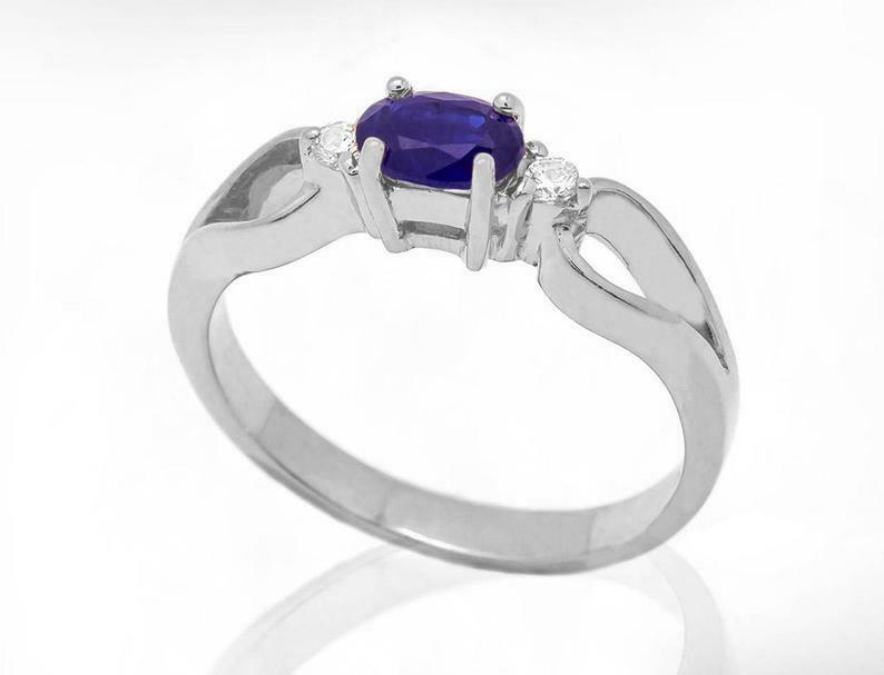 1.2ct Oval Purple Amethyst Trilogy Split Band Engagement Ring 14k WhiteGold Over