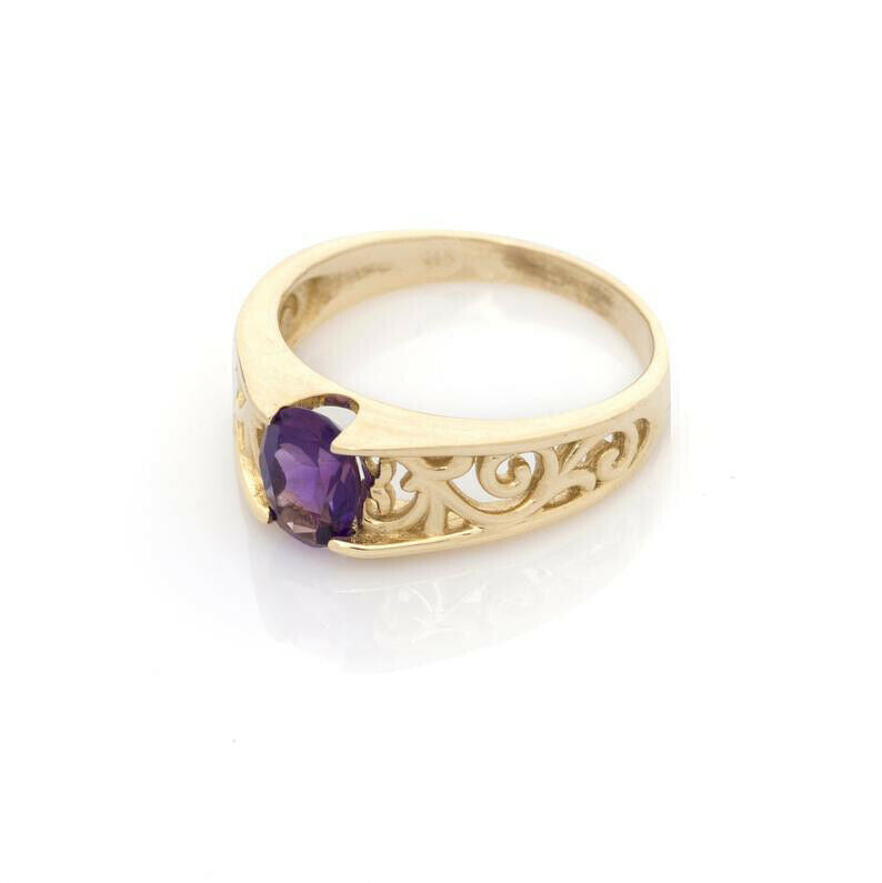 1.2ct Oval Cut Purple Amethyst Vintage Filigree Engagement Ring 14k Yellow Gold Over