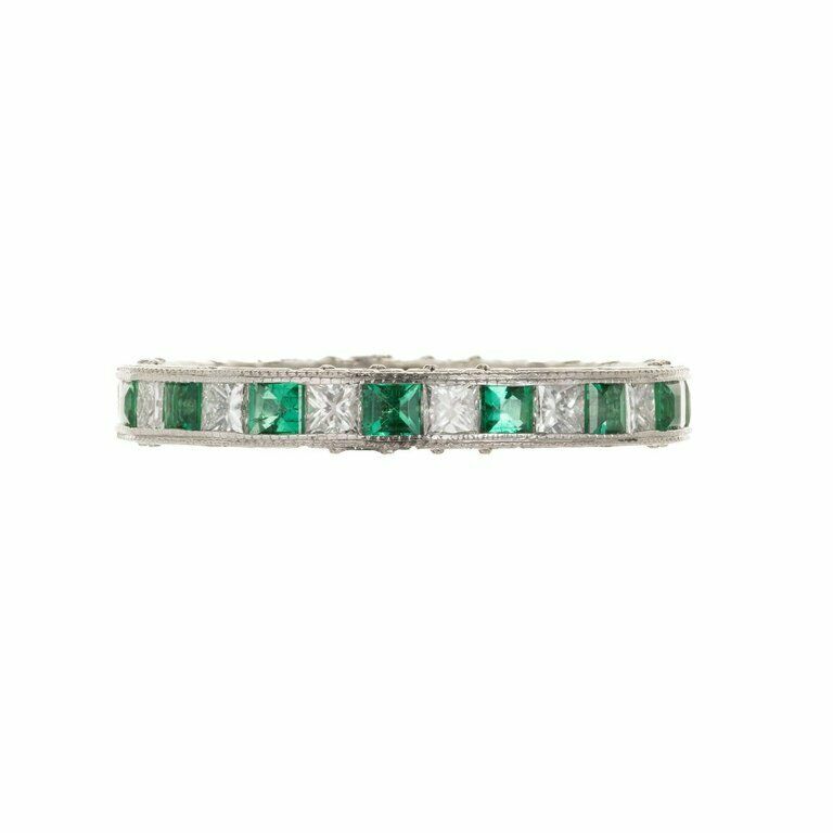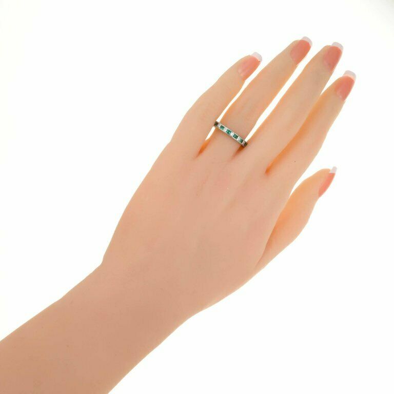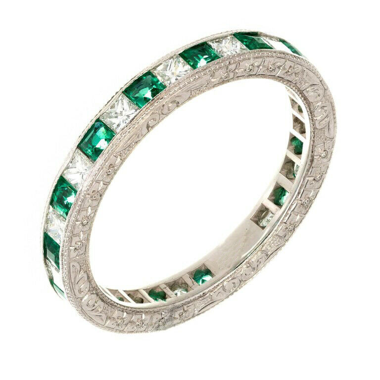 1.2ct Princess Cut Green Emerald Wedding Band Ring Vintage 14k White Gold Finish