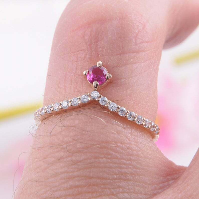 1.2ct Round Cut Pink Ruby Engagement Ring Curved Shape 14k Rose Gold Finish