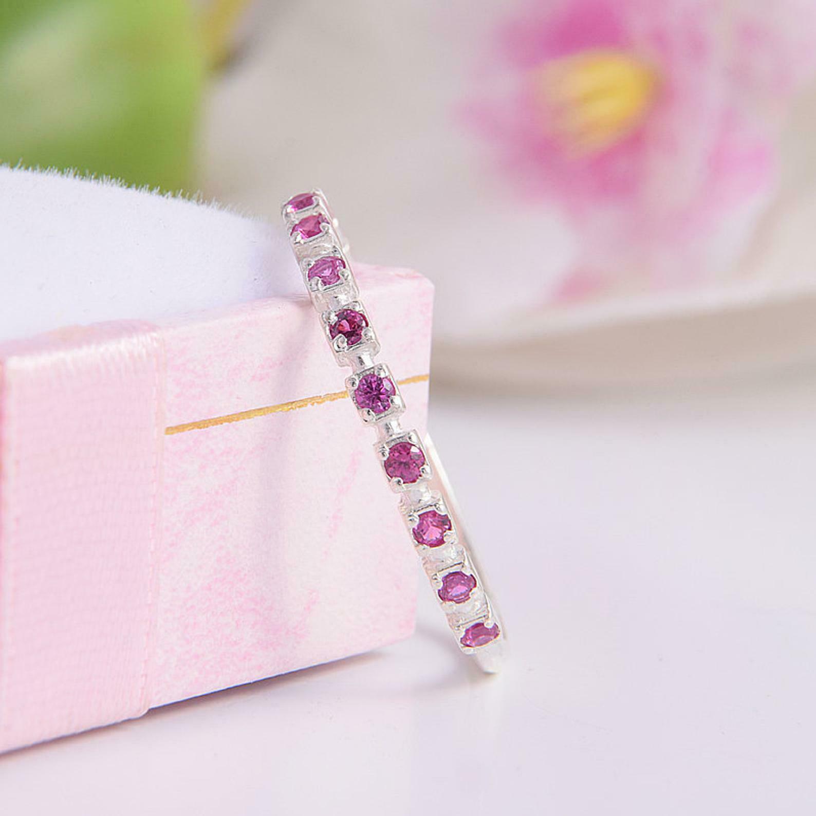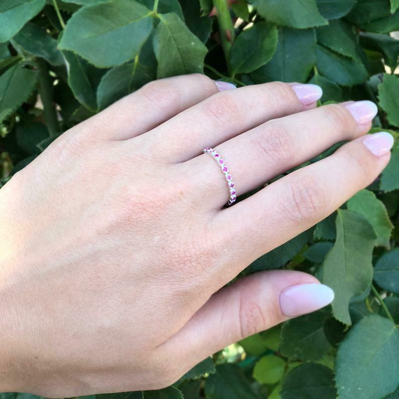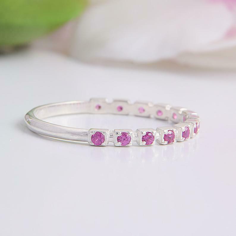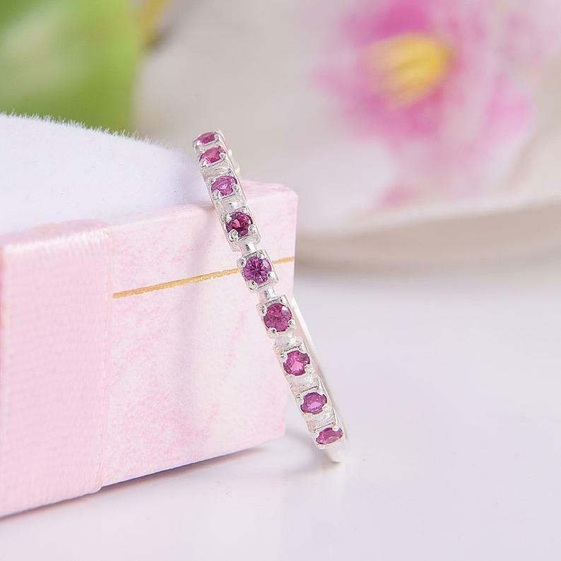 1.2ct Round Cut Pink Sapphire Half Eternity Wedding Band 14k White Gold Finish
