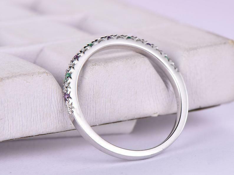 1.2ct Round Cut Purple Amethyst Emerald Half Eternity Wedding Band 14k White Gold Finish