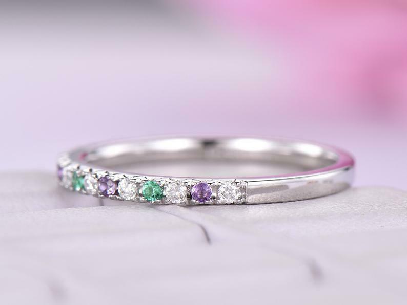 1.2ct Round Cut Purple Amethyst Emerald Half Eternity Band 14k White Gold Finish