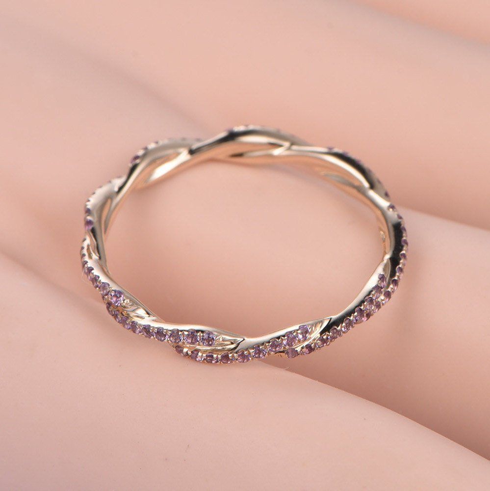 1.2ct Round Cut Purple Amethyst Infinity Wedding Band Ring 14k Rose Gold Finish