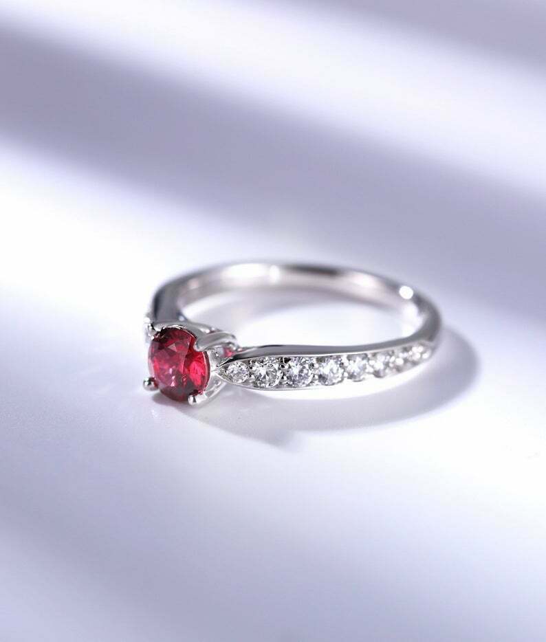1.2ct Round Cut Ruby Engagement Ring Solitaire with Accent 14k White Gold Finish