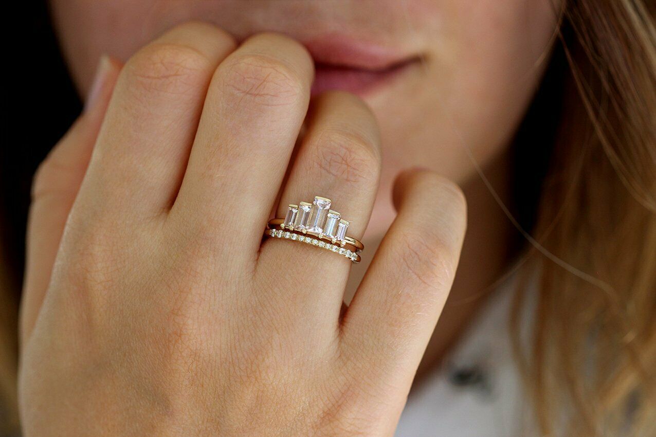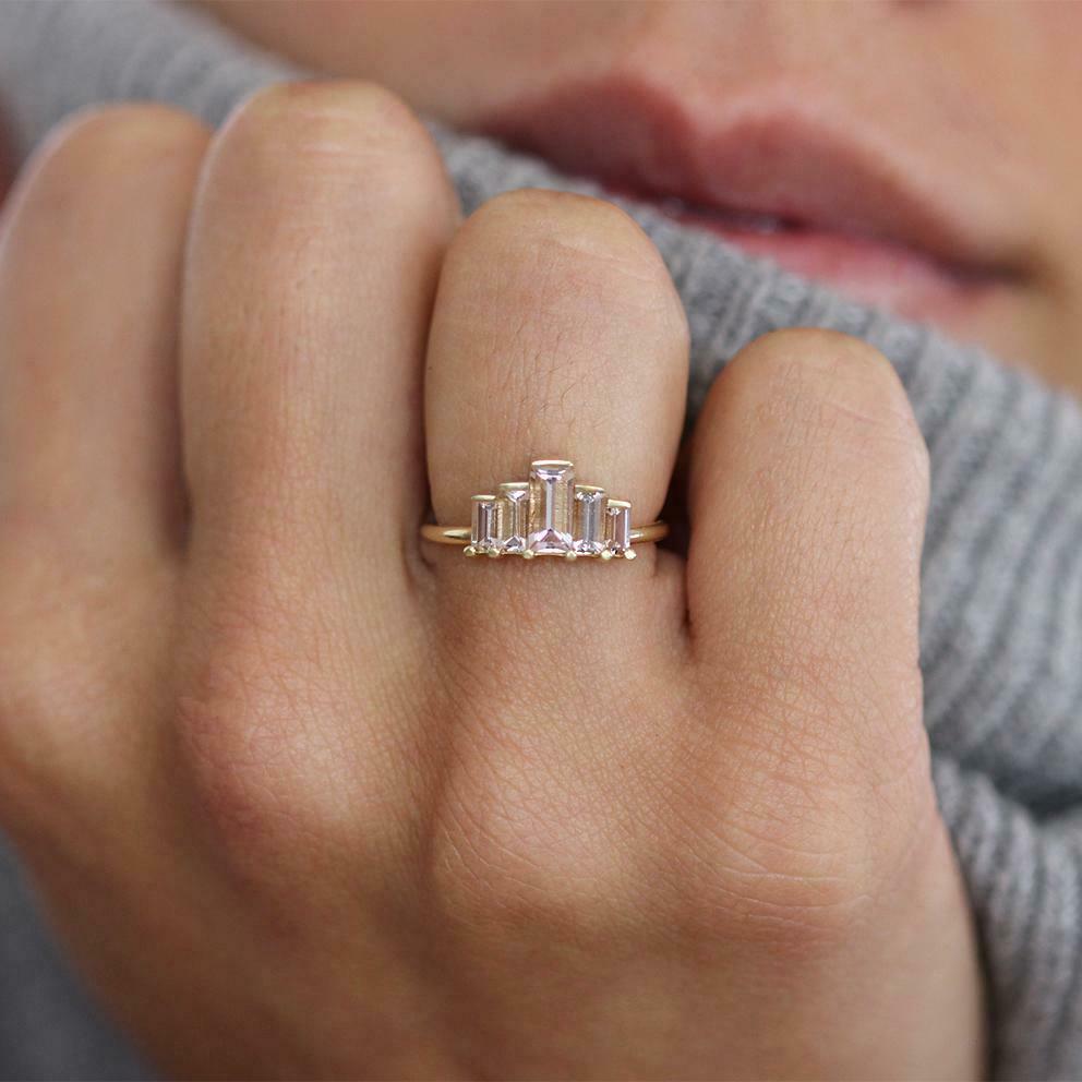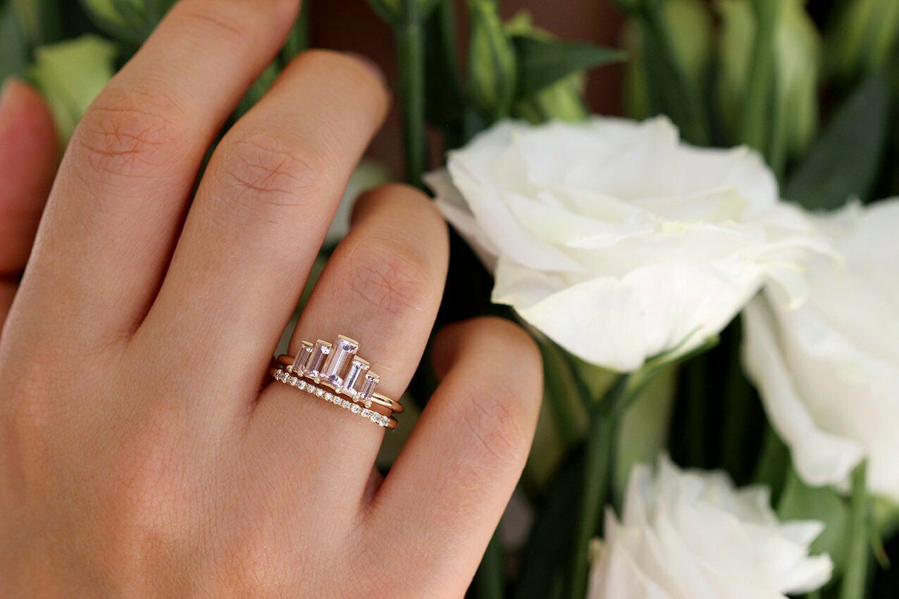 1.3ct Baguette Cut Morganite Engagement Ring 14k Yellow Gold Over Art Deco Crown
