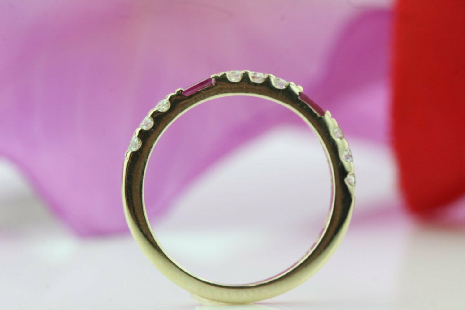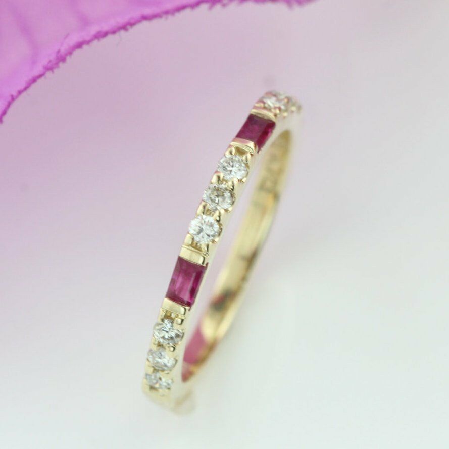 1.3ct Baguette Cut Pink Ruby Half Eternity Wedding Band Ring 14k YellowGold Over