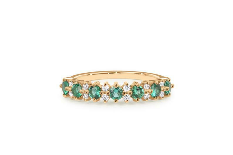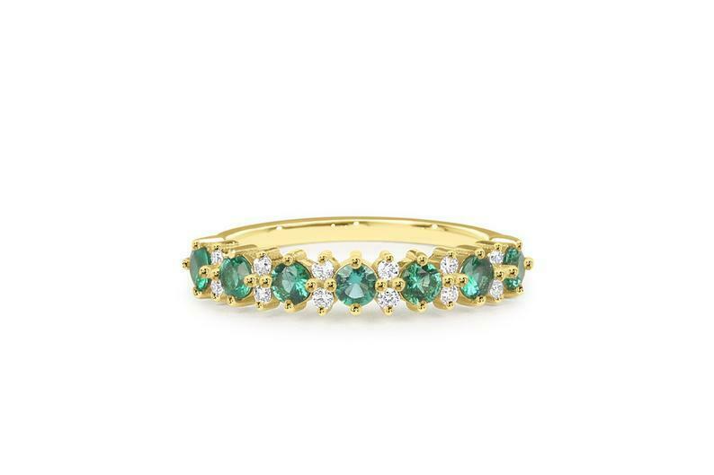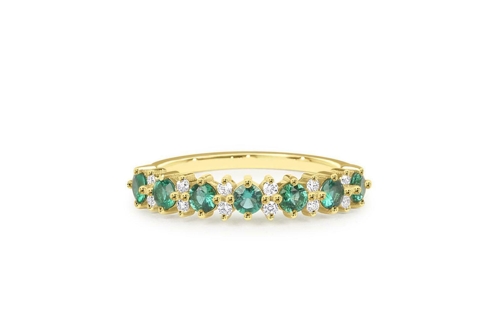 1.3ct Round Cut Green Emerald Half Eternity Wedding Band 14k Yellow Gold Finish