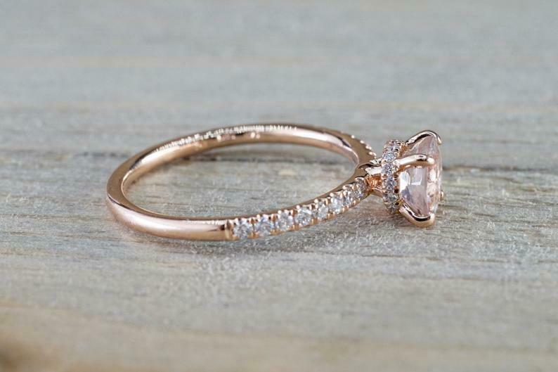 1.3ct Round Cut Morganite Engagement Ring 14k Rose Gold Finish Accents Solitaire