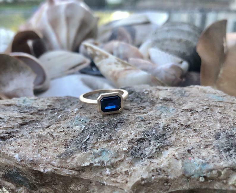1.4ct Engagement Ring Emerald Cut Blue Sapphire Solitaire 14k White Gold Finish