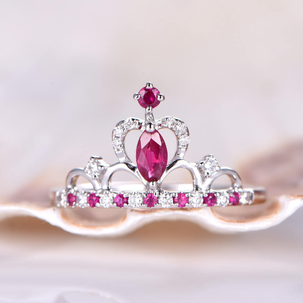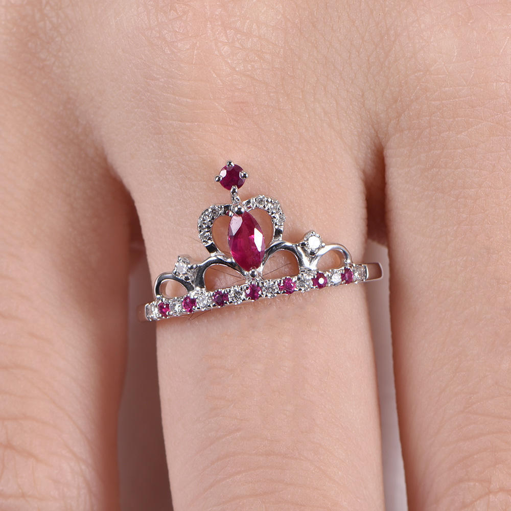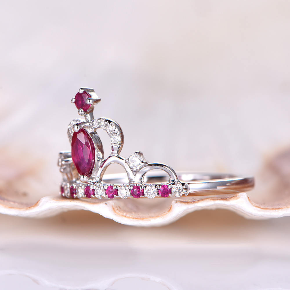 1.4ct Marquise Cut Pink Ruby Crown Promise Engagement Ring 14k White Gold Finish
