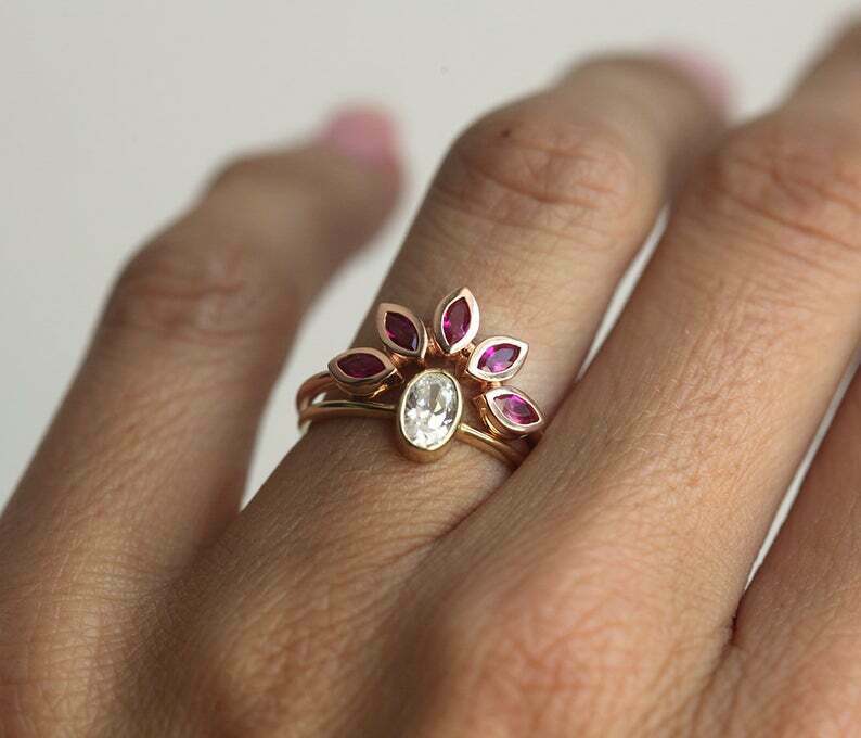 1.4ct Marquise Cut Pink Ruby Engagement Ring 14k Rose Gold Finish Crown Tiara