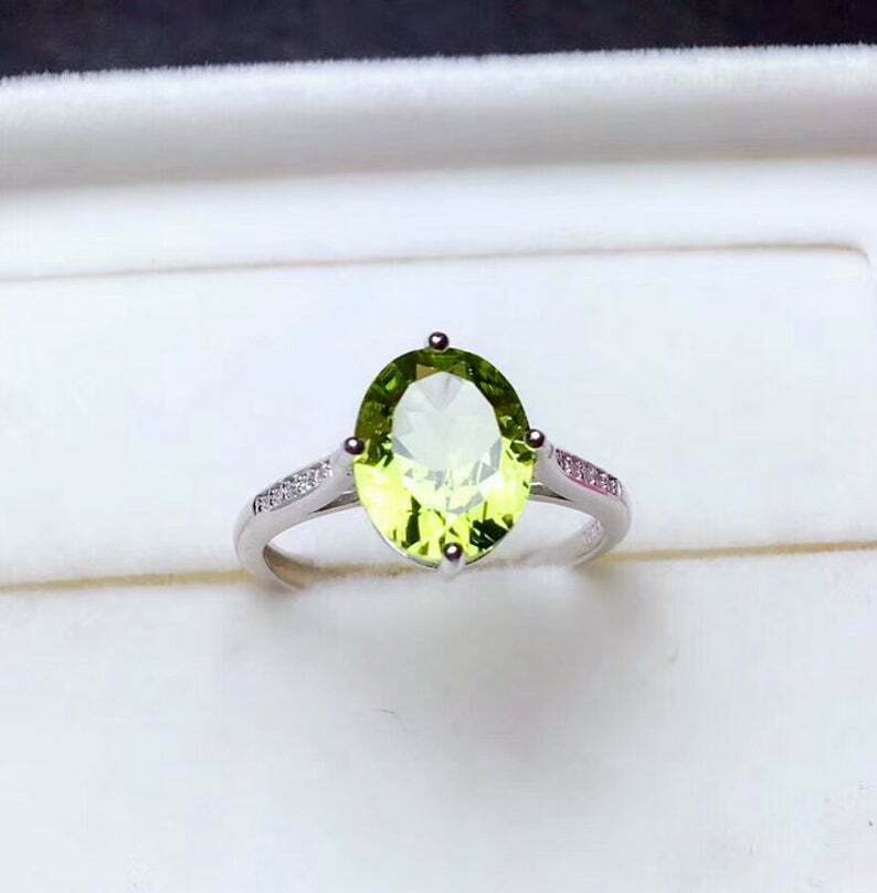 1.4ct Oval Cut Green Peridot Diamond Accent Solitaire Ring 14k White Gold Finish