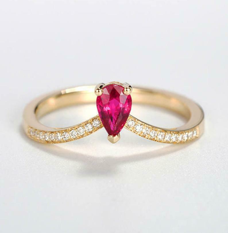 1.4ct Pear Cut Pink Ruby Curved Half Eternity Wedding Band 14k Yellow Gold Over