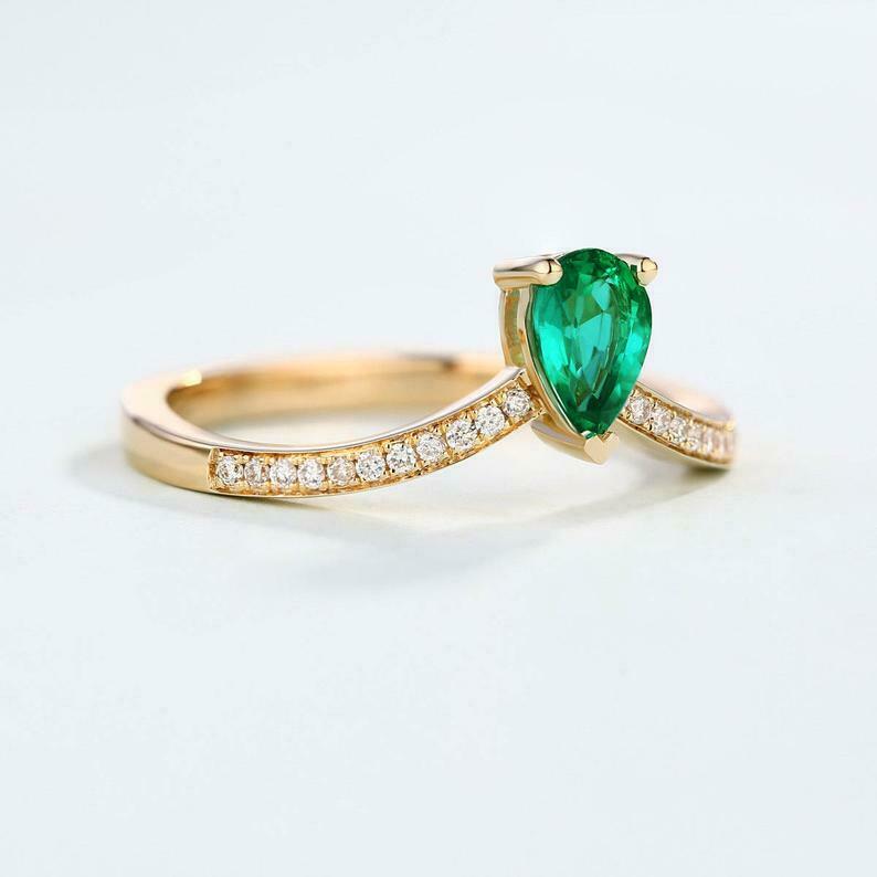 1.4ct Pear Green Emerald Curved Half Eternity Wedding Band 14k Yellow Gold Over