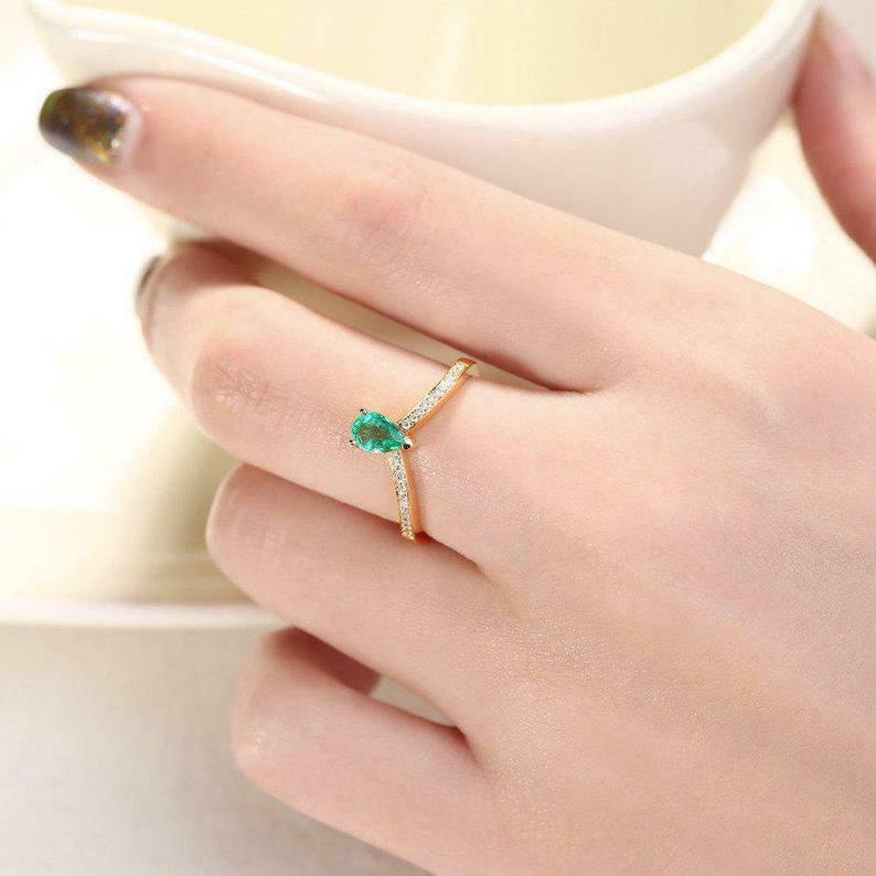 1.4ct Pear Cut Green Emerald Curved Half Eternity Wedding Band 14k Yellow Gold Over