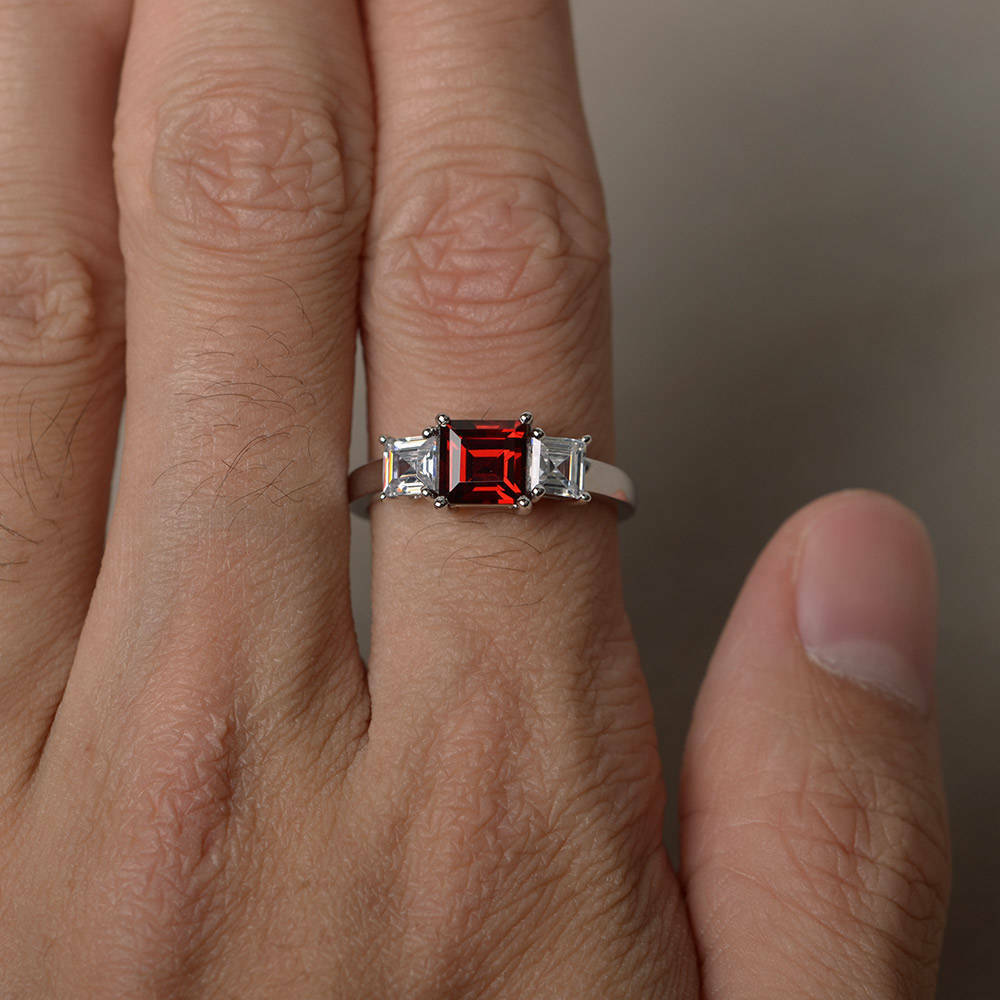 1.5ct Asscher Cut Red Garnet Engagement Ring 14k White Gold Over Trilogy Promise