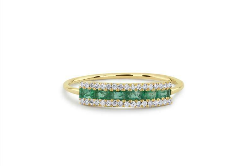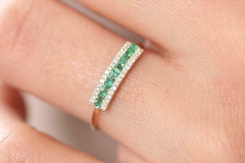 1.5ct Baguette Cut Green Emerald Minimalist Wedding Band 14k Yellow Gold Finish