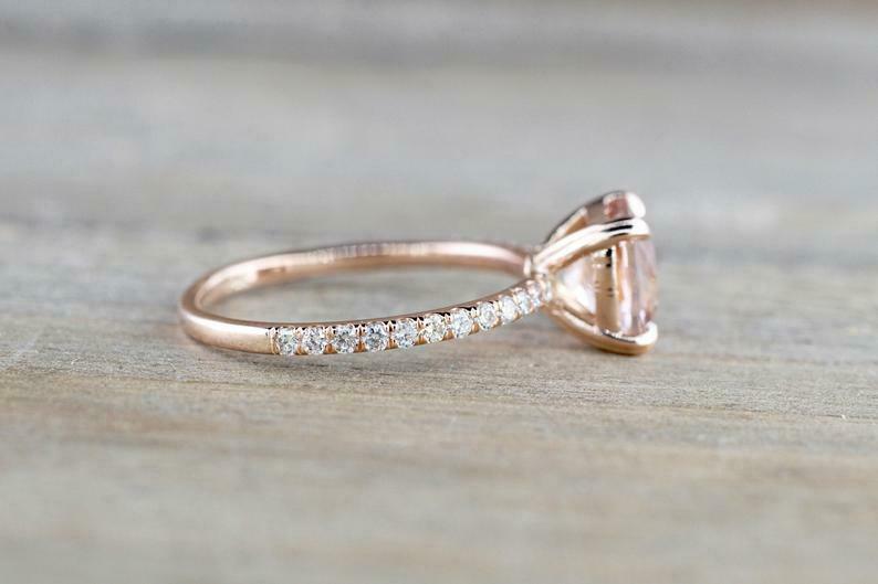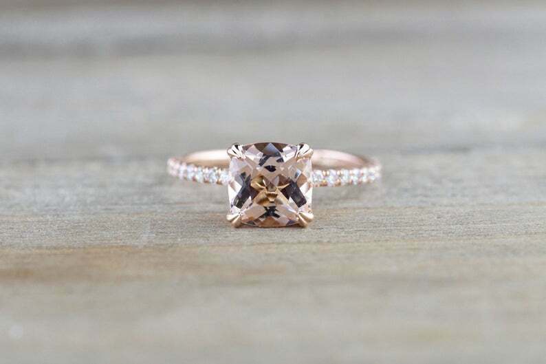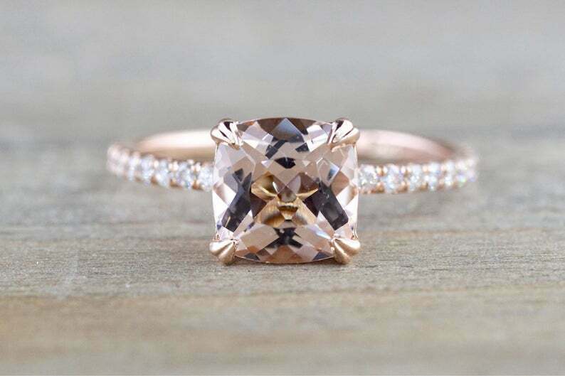 1.5ct Cushion Cut Peach Morganite Round Accents Solitaire Ring 14k Rose Gold Over