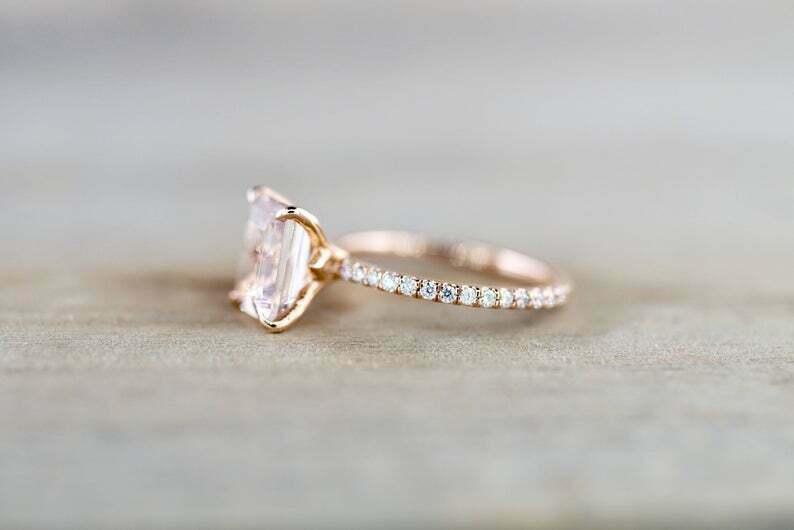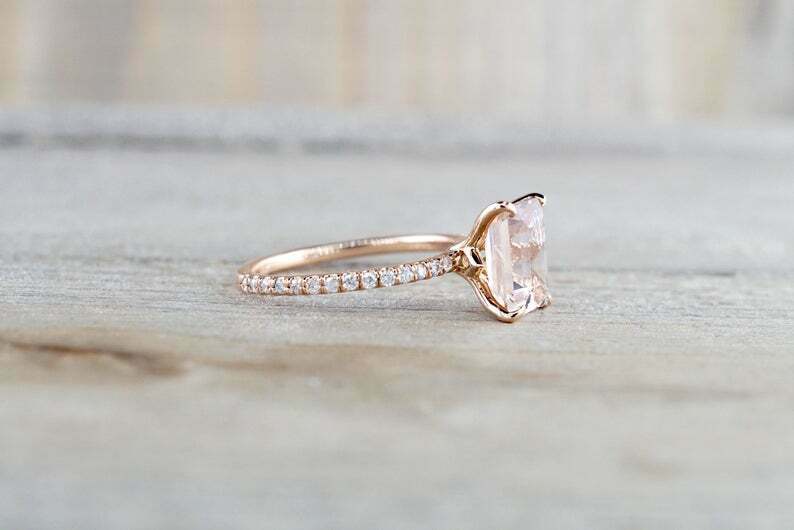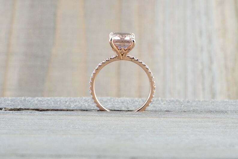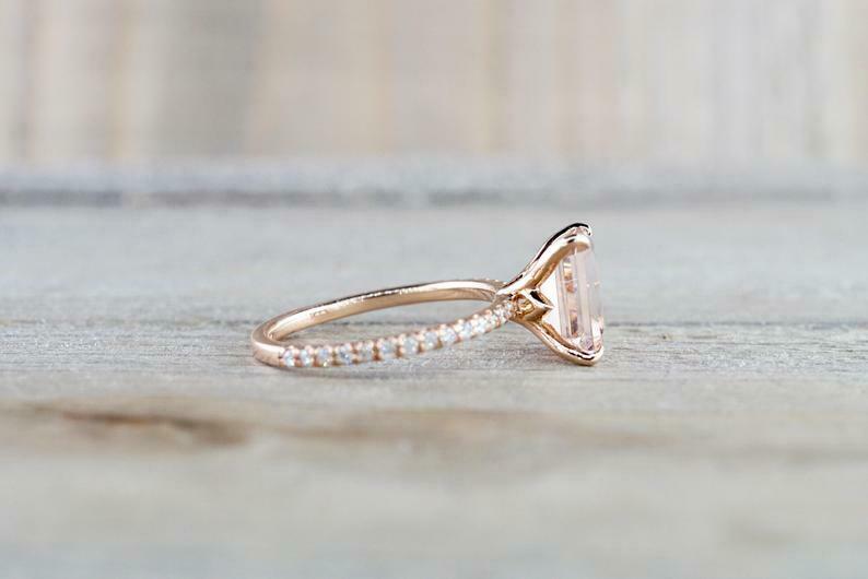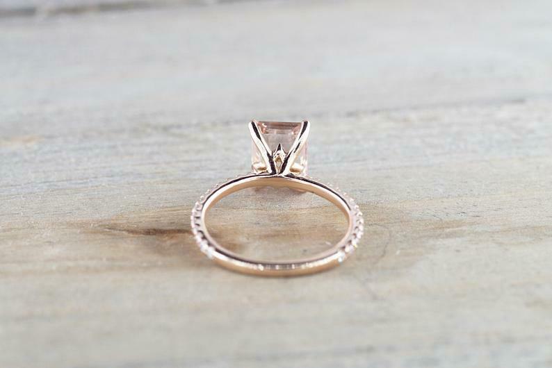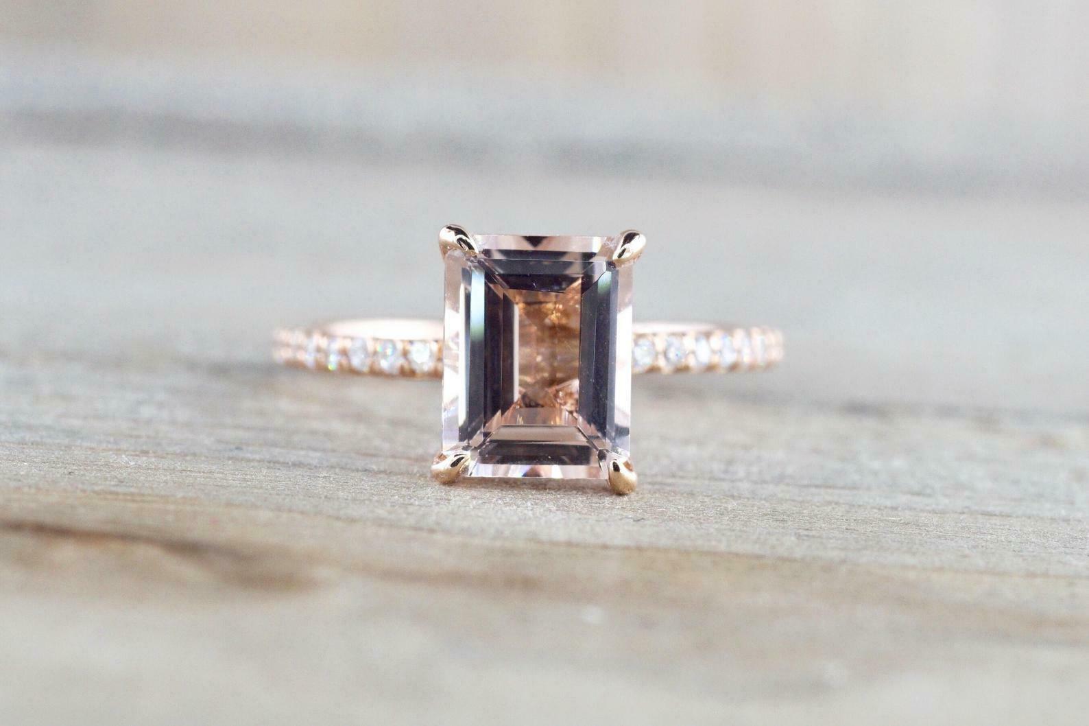 1.5ct Emerald Cut Peach Morganite Engagement Ring 14k Rose Gold Finish Solitaire
