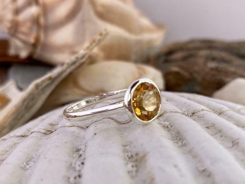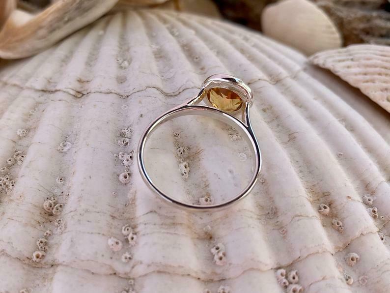 1.5ct Engagement Ring Round Cut Yellow Citrine Solitaire 14k White Gold Finish
