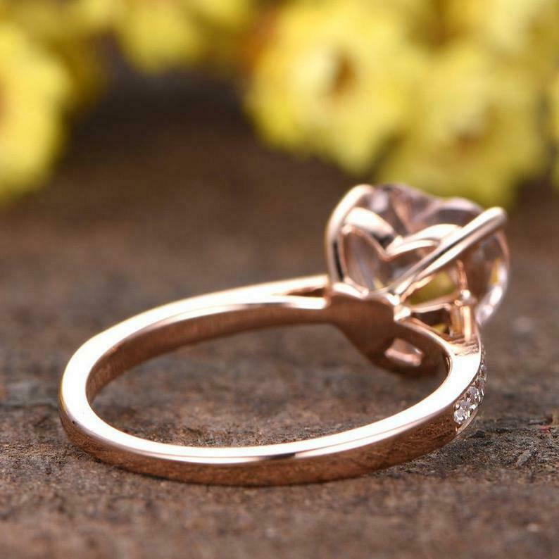 1.5ct Heart Cut Peach Morganite Round Accent Solitaire Ring 14k Rose Gold Finish