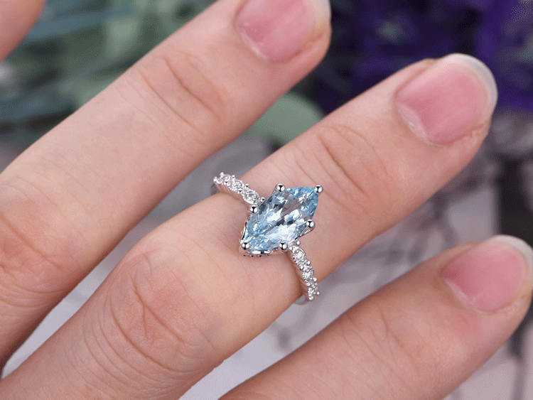 1.5ct Marquise Cut Blue Aquamarine Diamond Accent Engagement Ring 14k White Gold Over
