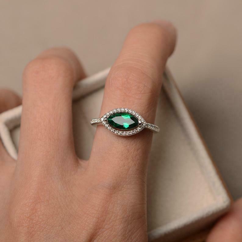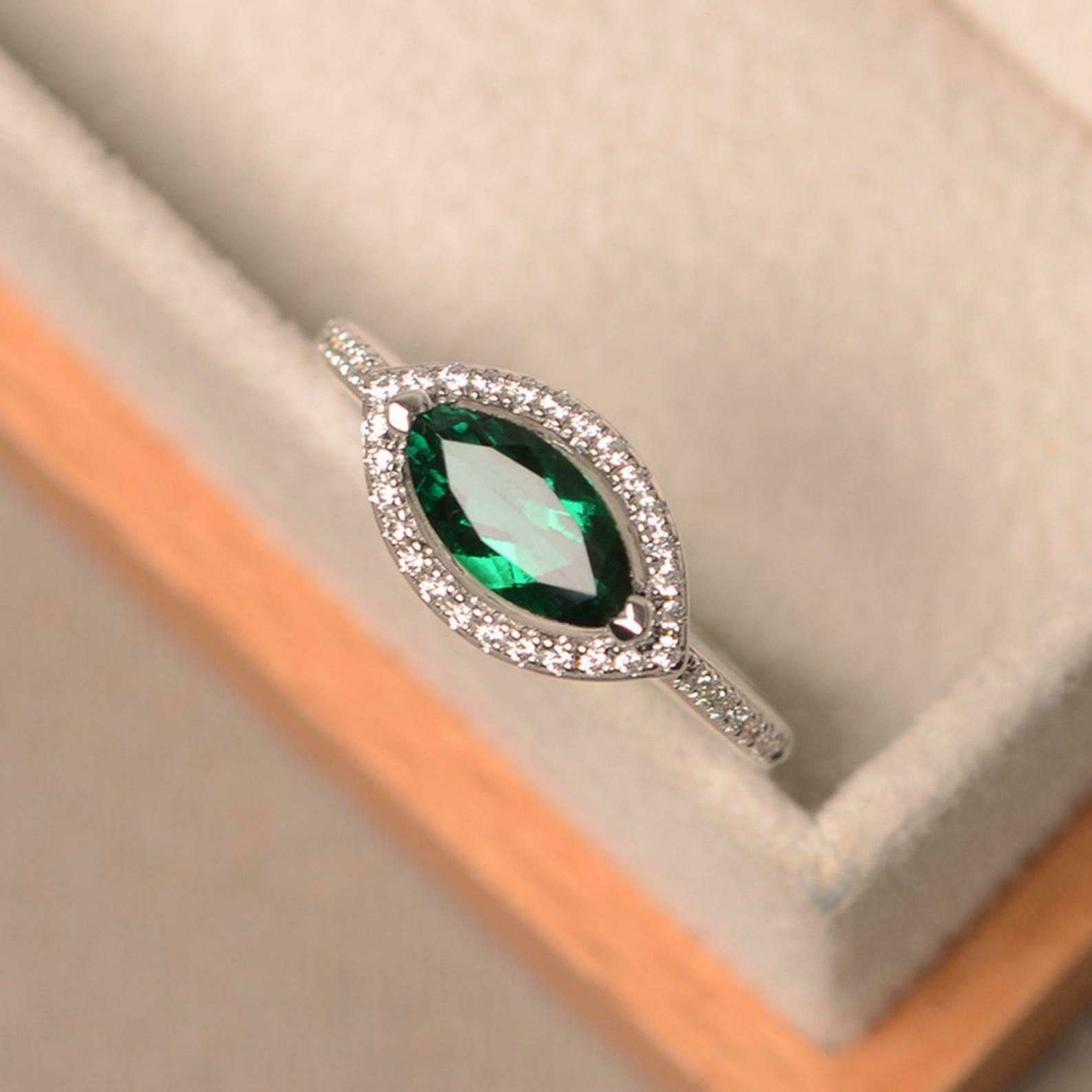 1.5ct Marquise Cut Green Emerald Engagement Ring Diamond Halo 14k White Gold Over