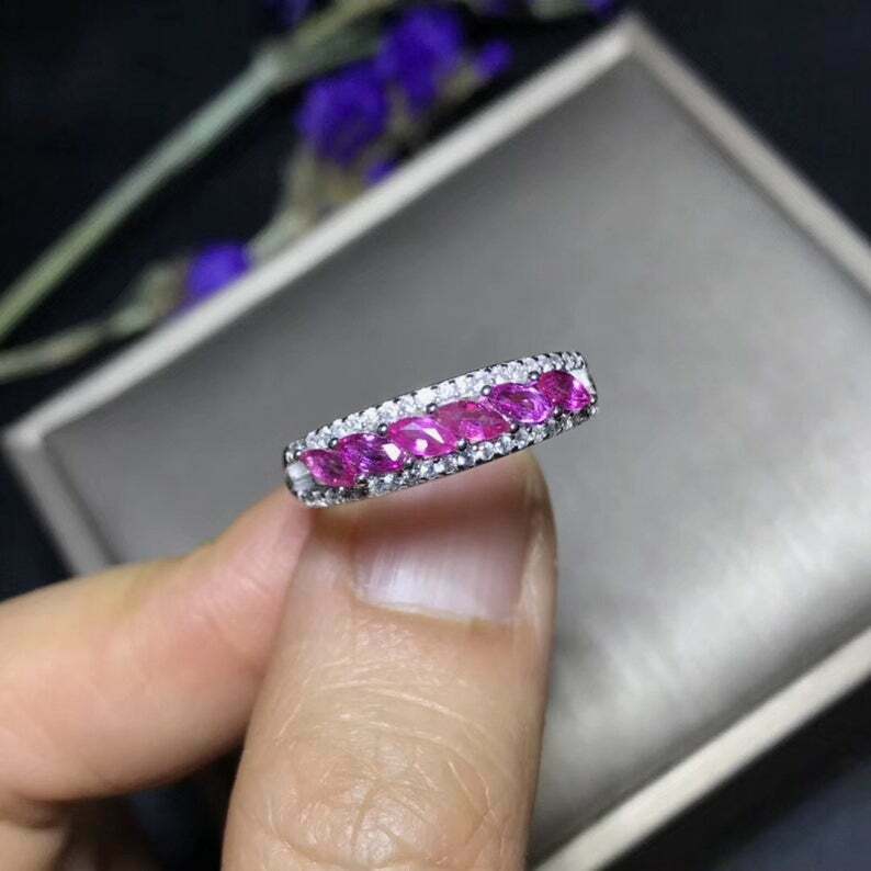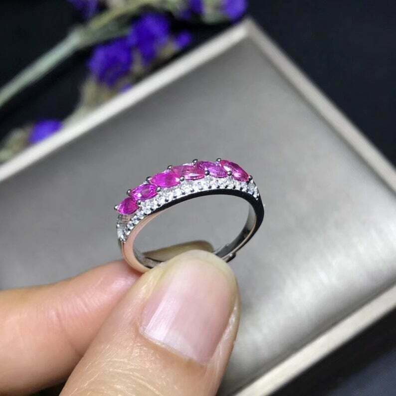 1.5ct Marquise Cut Pink Sapphire Wedding Band Half Eternity 14k WhiteGold Finish